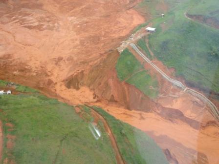 Barragem de rejeitos rompida, vista de montante. Foto de Axel Grael (2007).